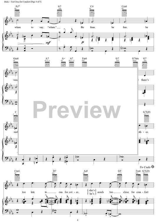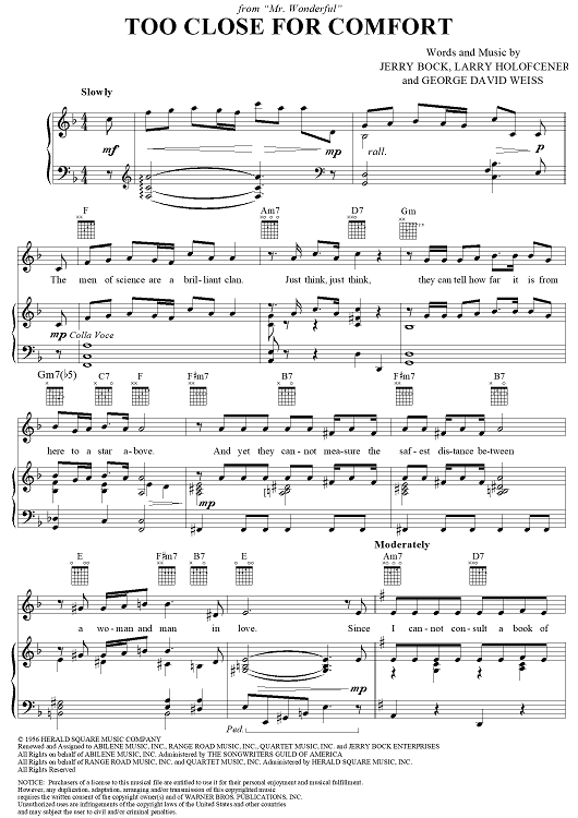 Digital Sheet Music for Too Close for Comfort by George Weiss, Jerry Bock, Larry Holofcener scored for Piano/Vocal/Chords; id:125722