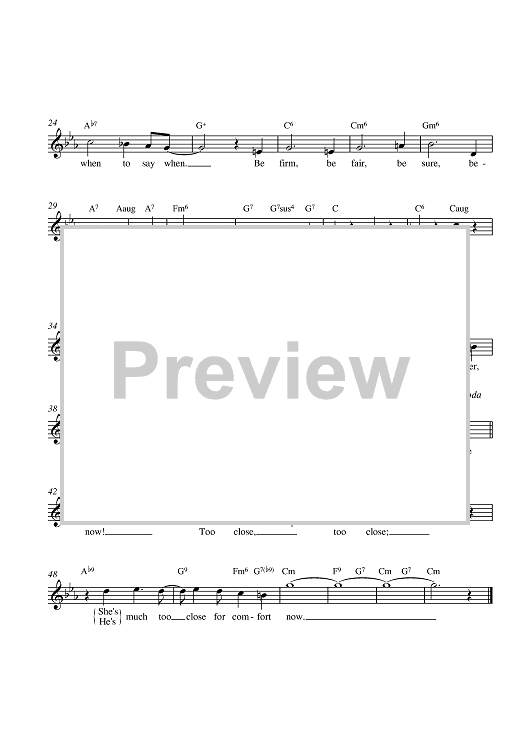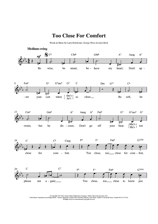 Digital Sheet Music for Too Close For Comfort by Larry Holofcener, Peggy Lee, Sammy Davis Jr. scored for Lead Sheet; id:380741