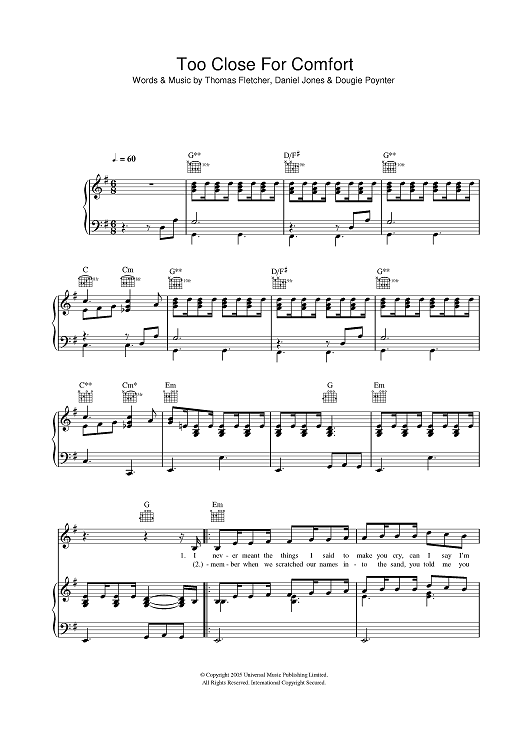 Digital Sheet Music for Too Close For Comfort by Daniel Jones, Tom Fletcher, McFly, Dougie Poynter scored for Piano/Vocal/Chords; id:386876
