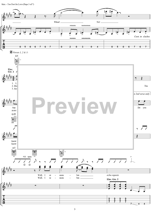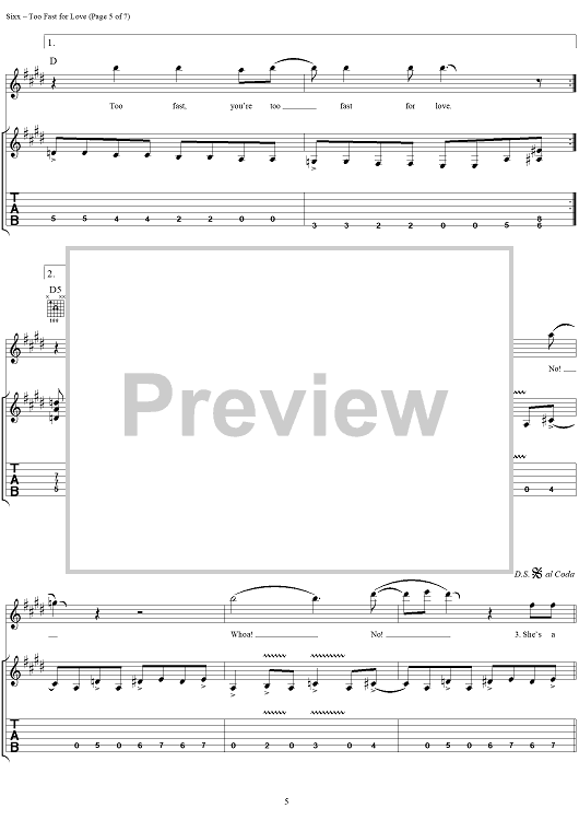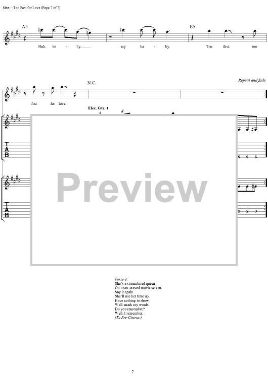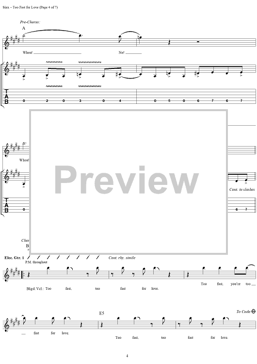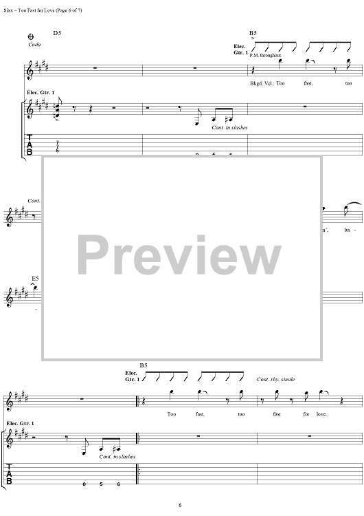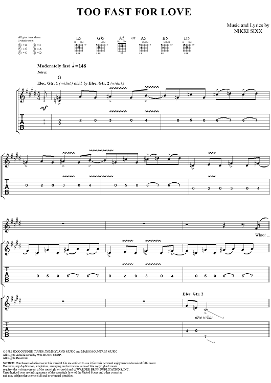 Digital Sheet Music for Too Fast for Love by Mötley Crüe, Nikki Sixx scored for Guitar Tab/Vocal; id:297763