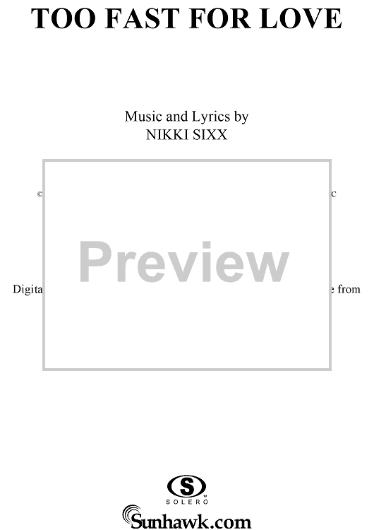 "Too Fast for Love" Sheet Music by Mötley Crüe