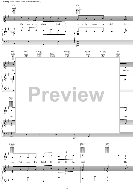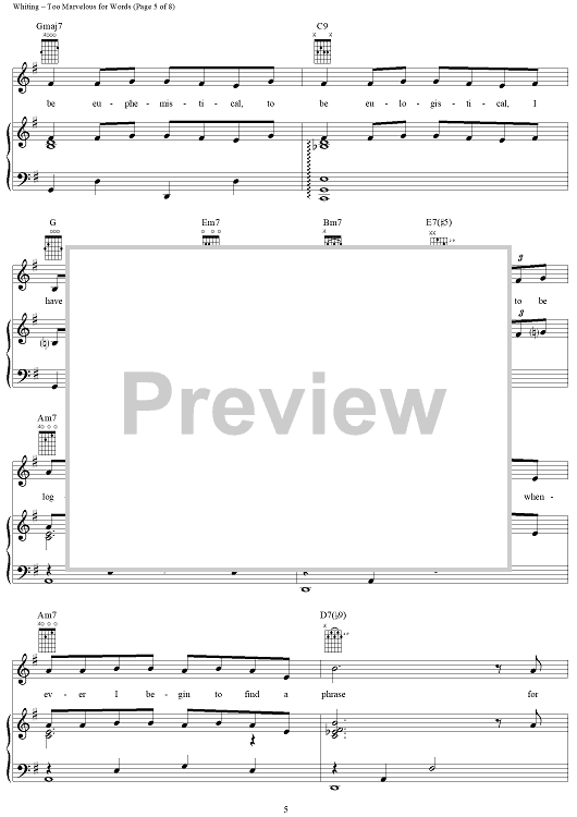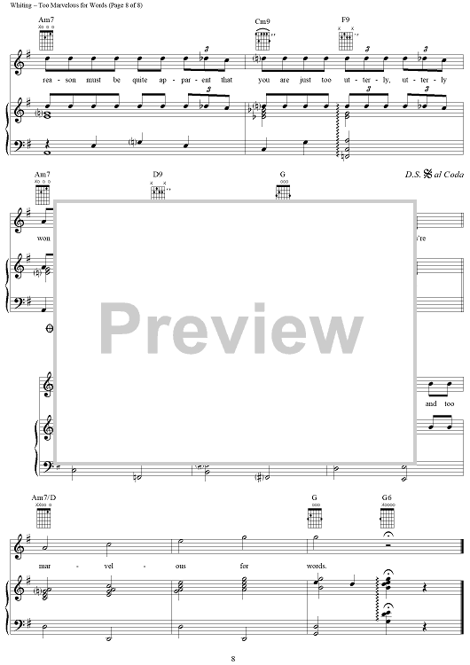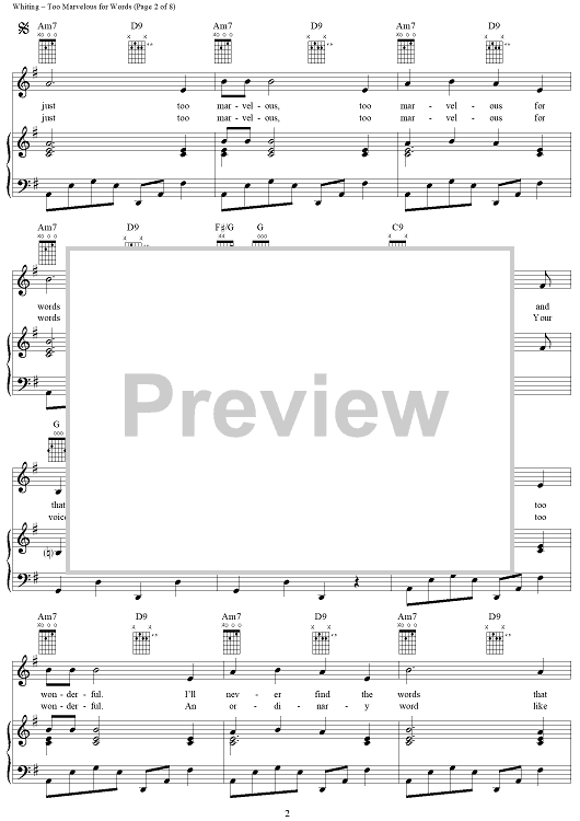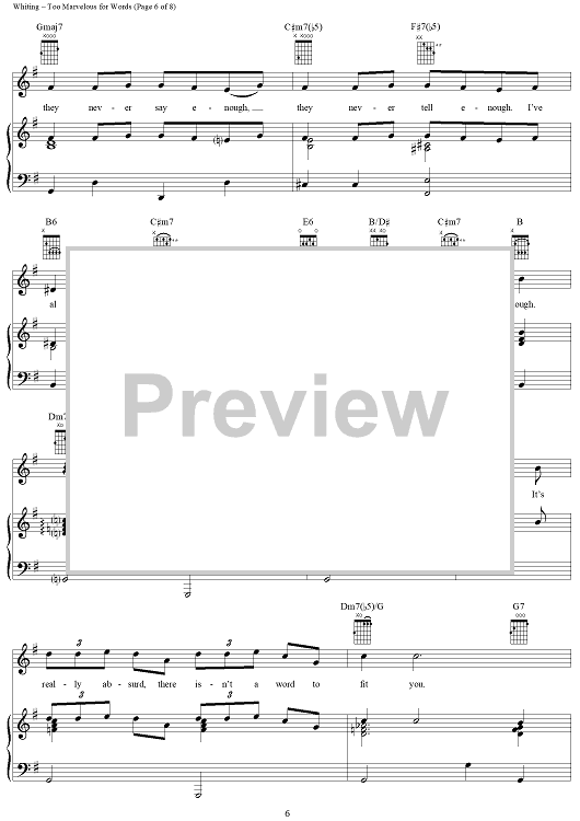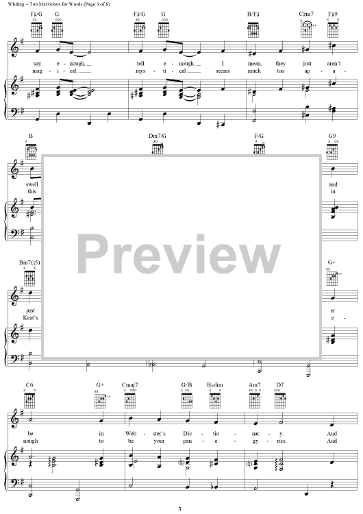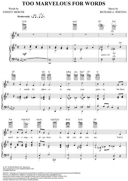 Digital Sheet Music for Too Marvelous for Words by Johnny Mercer, Michael Feinstein, Richard A. Whiting scored for Piano/Vocal/Chords; id:284571