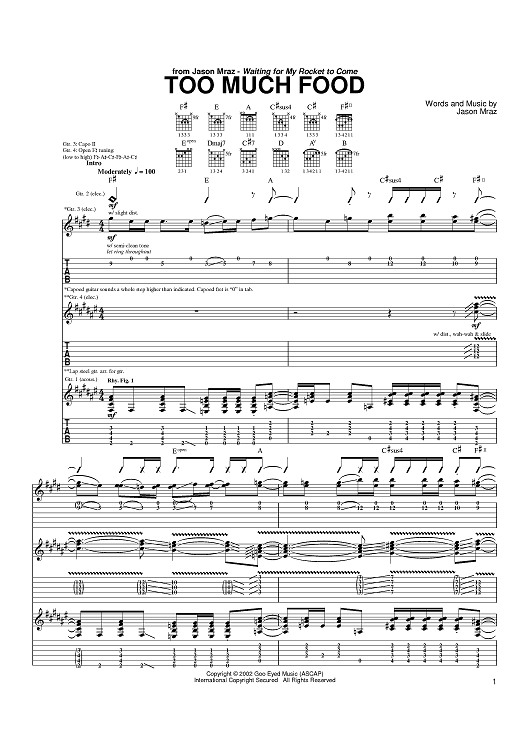Digital Sheet Music for Too Much Food by Jason Mraz scored for Guitar Tab; id:384677