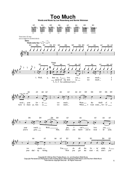 Digital Sheet Music for Too Much by Elvis Presley, Lee Rosenberg, Bernie Weinman scored for Easy Guitar; id:369629