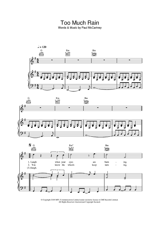 Digital Sheet Music for Too Much Rain by Paul McCartney scored for Piano/Vocal/Chords; id:386351