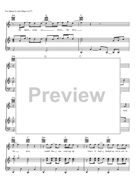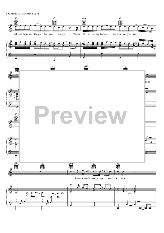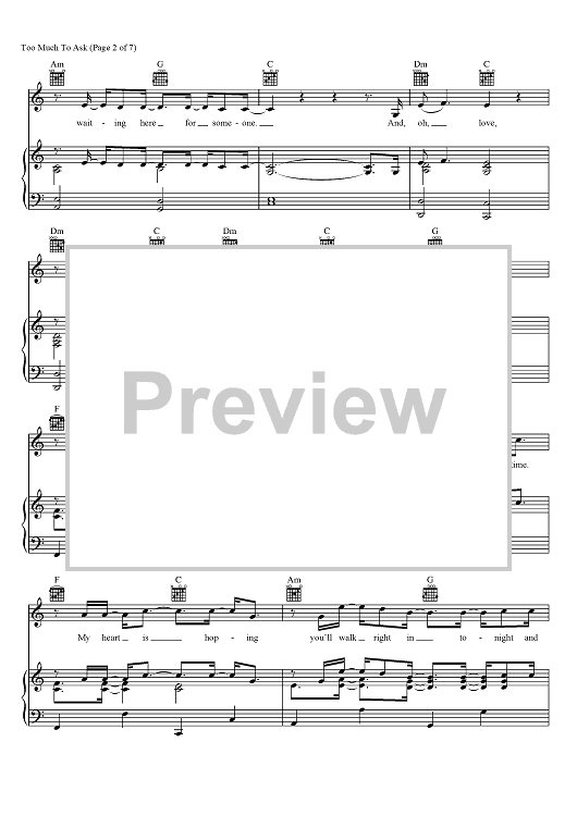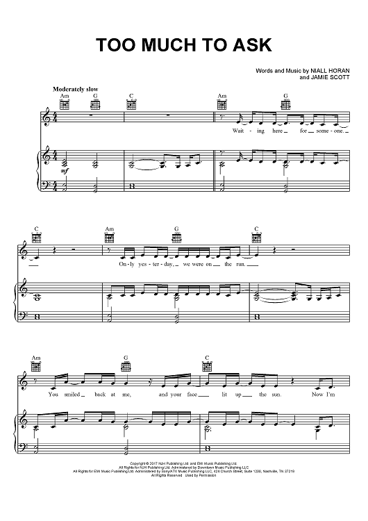 Digital Sheet Music for Too Much To Ask by Niall Horan, Jamie Scott scored for Piano/Vocal/Chords; id:465647