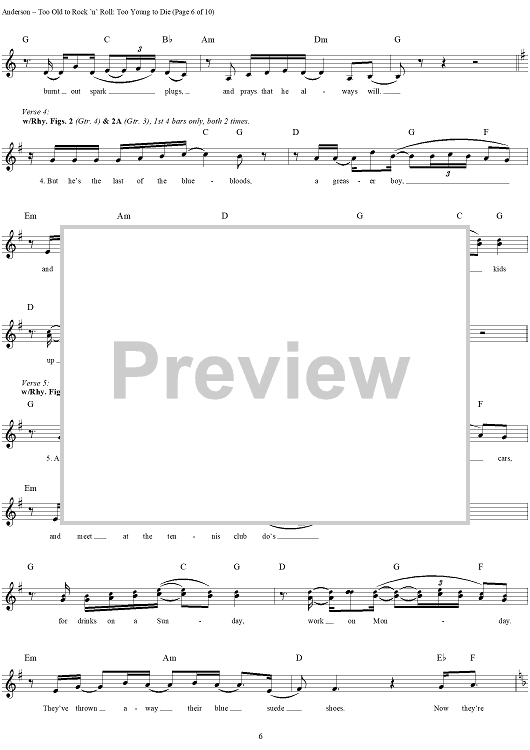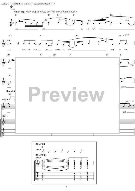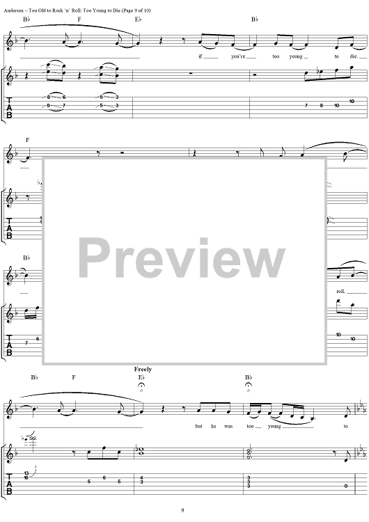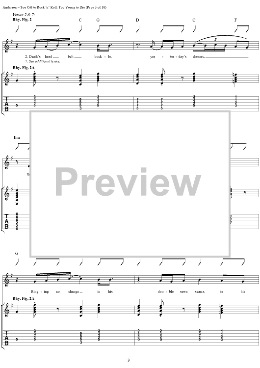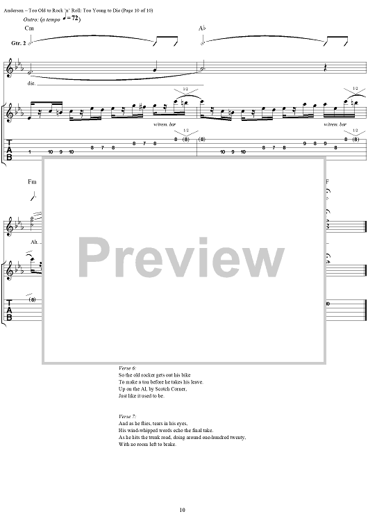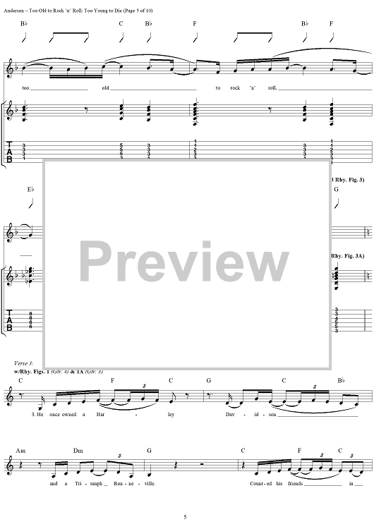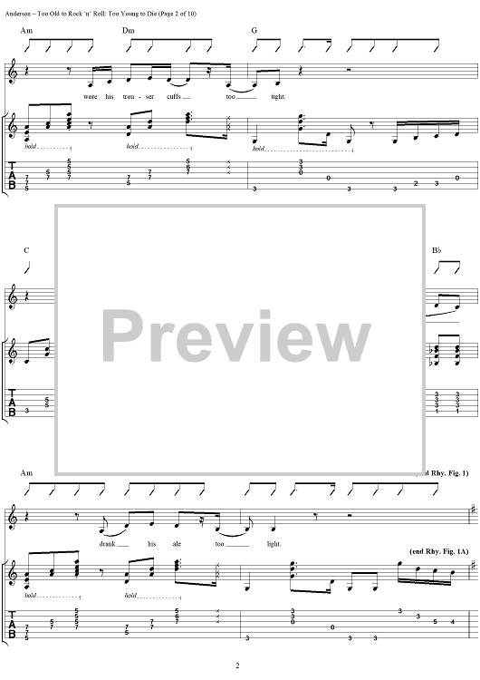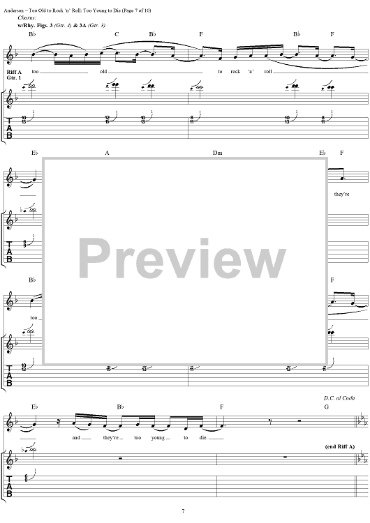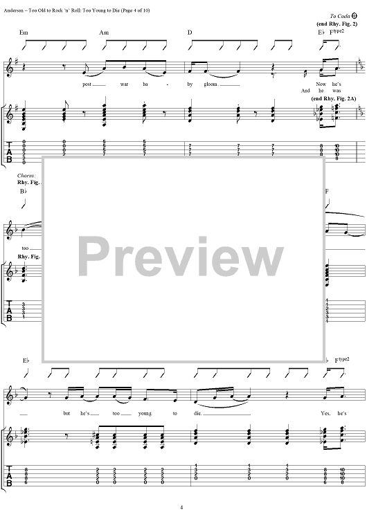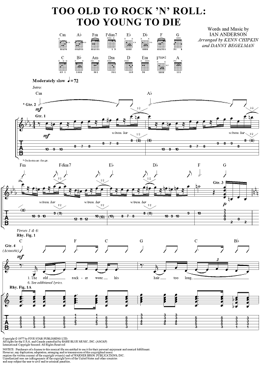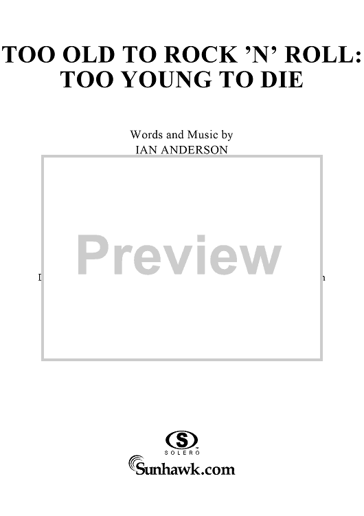 "Too Old to Rock'n'Roll:Too Young to Die" Sheet Music by Jethro Tull