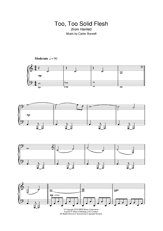 Digital Sheet Music for Too Too Solid Flesh (from Hamlet) by Carter Burwell scored for Piano; id:395939