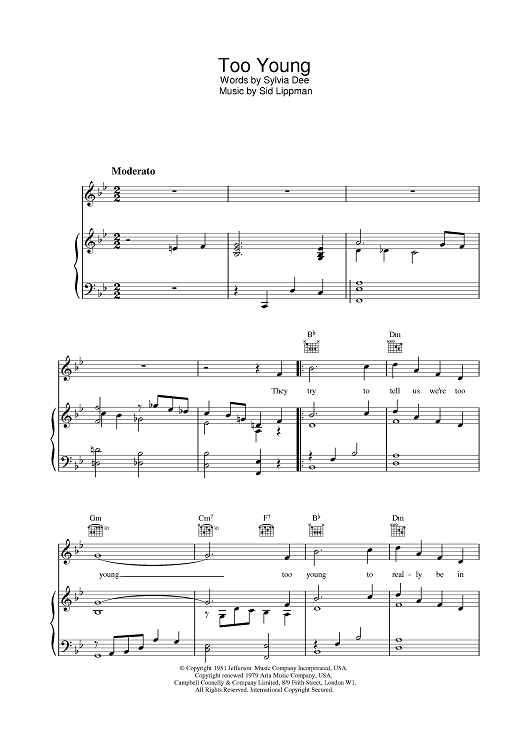 Digital Sheet Music for Too Young by Nat King Cole scored for Piano/Vocal/Chords; id:378677