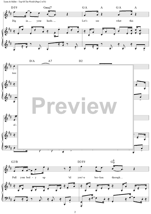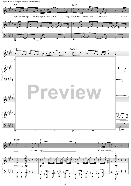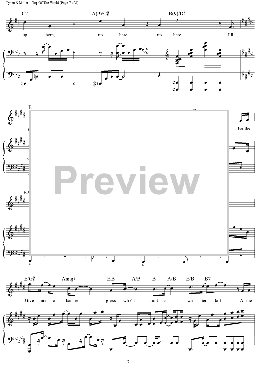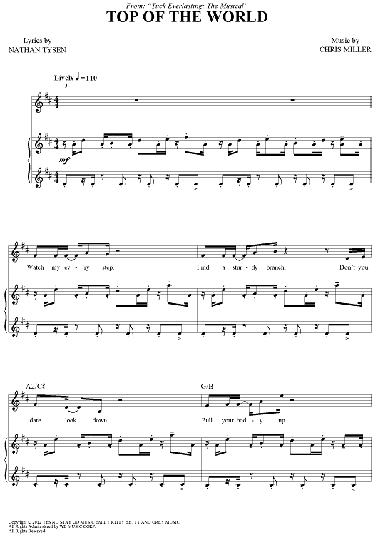 Digital Sheet Music for Top Of The World by Chris Miller, Nathan Tysen scored for Piano/Vocal/Chords; id:435286