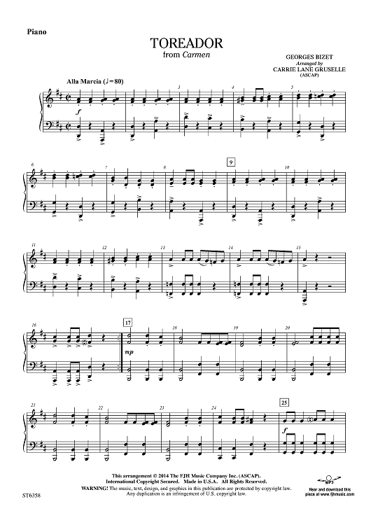 Digital Sheet Music for Toreador (from Carmen) - Piano by Georges Bizet, Carrie Lane Gruselle scored for Orchestra; id:448291