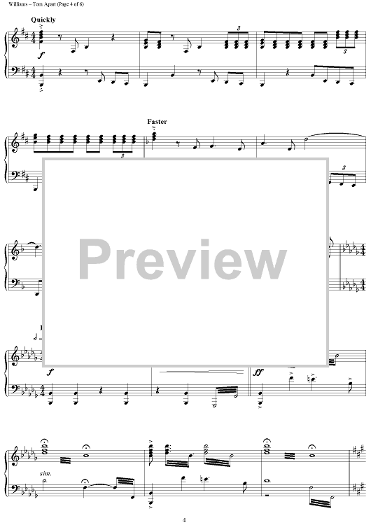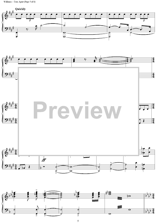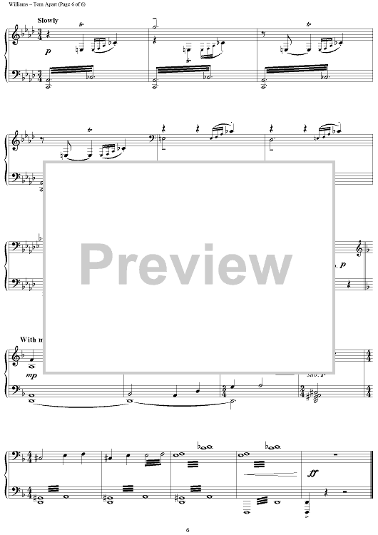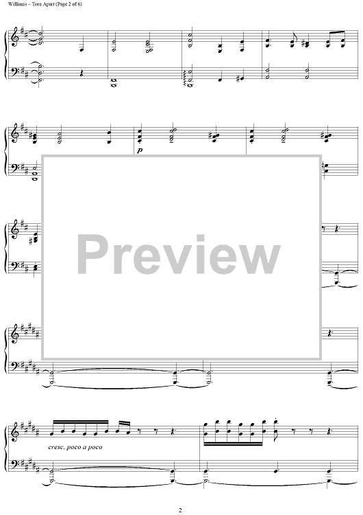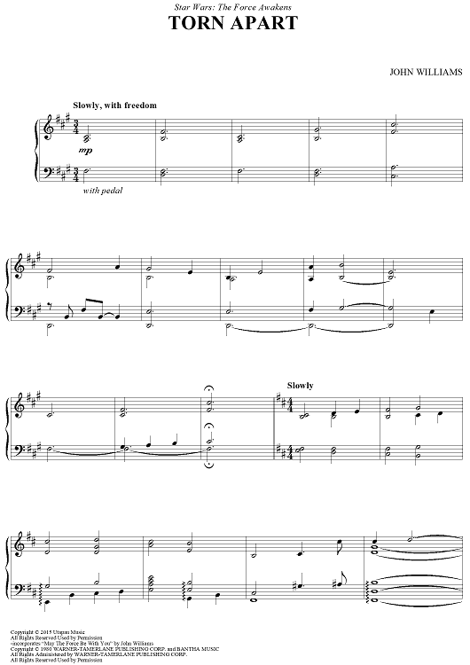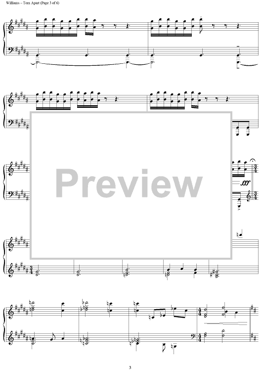 Digital Sheet Music for Torn Apart by John Williams scored for Piano Solo; id:456379