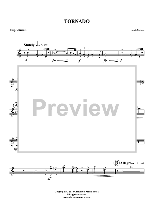 "Tornado - Euphonium BC/TC" Sheet Music by Frank Gulino