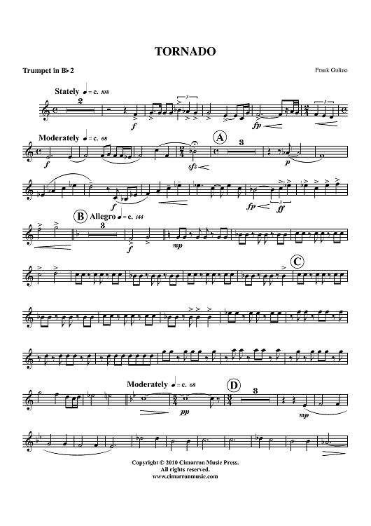 "Tornado - Trumpet 2 in B-flat" Sheet Music by Frank Gulino