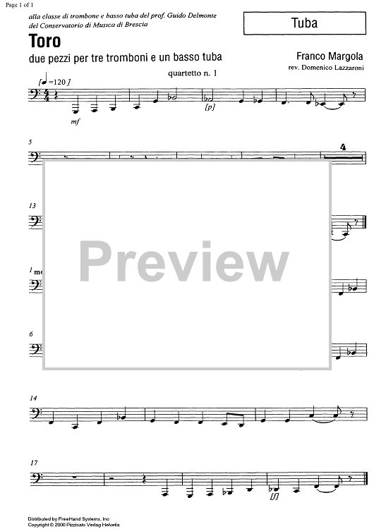 "Toro - Bass Tuba" Sheet Music by Franco Margola