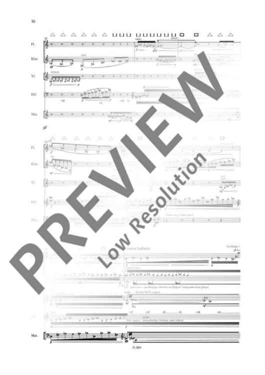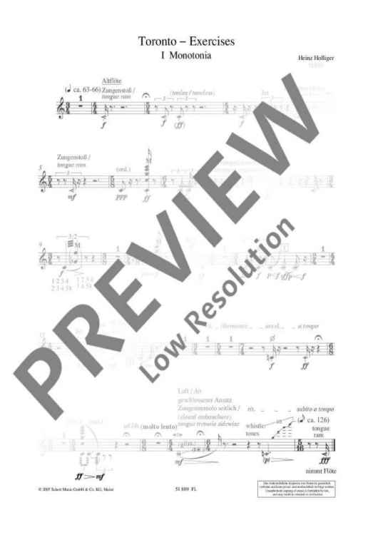 Digital Sheet Music for Toronto Exercises - Score and Parts by Heinz Holliger scored for Flute (also Altoflute), Clarinet In Bb, Violin, Harp And Marimba; id:477128