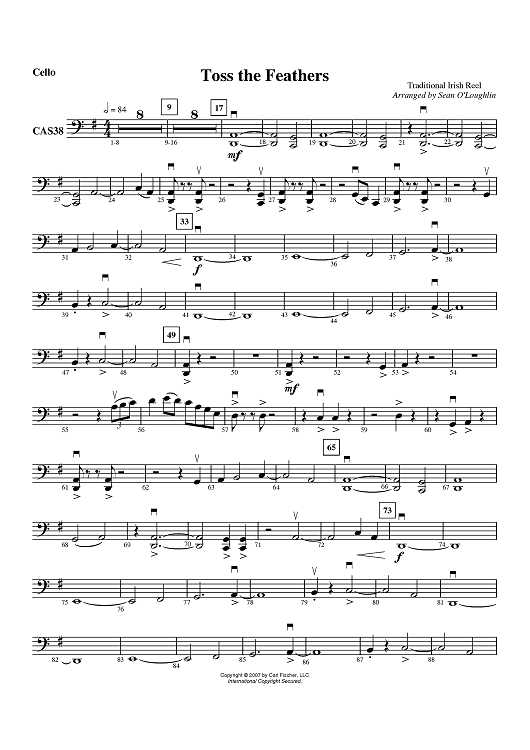 Digital Sheet Music for Toss The Feathers (Traditional Irish Reel) - Cello by Traditional, Sean O'Loughlin scored for Orchestra; id:408042