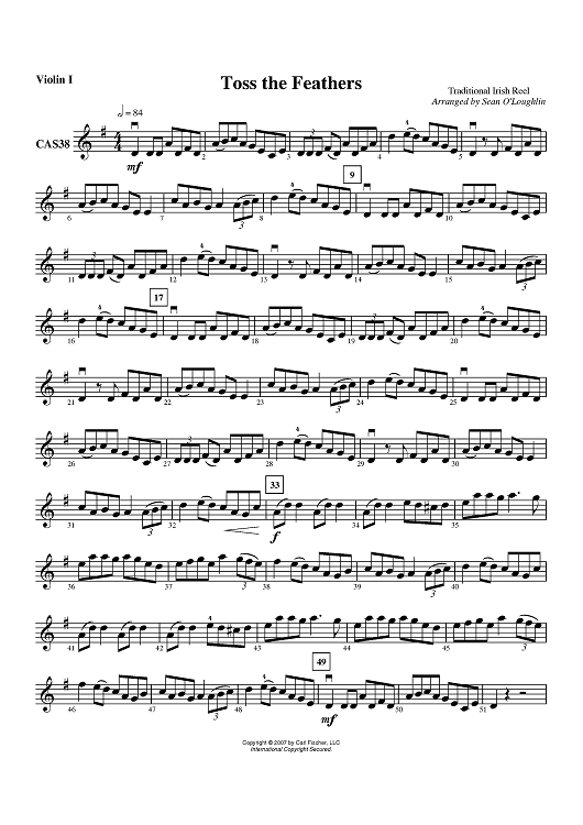 Digital Sheet Music for Toss The Feathers (Traditional Irish Reel) - Violin 1 by Traditional, Sean O'Loughlin scored for Orchestra; id:408038