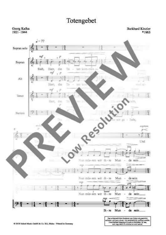 "Totengebet - Choral Score" Sheet Music by Burkhard Kinzler