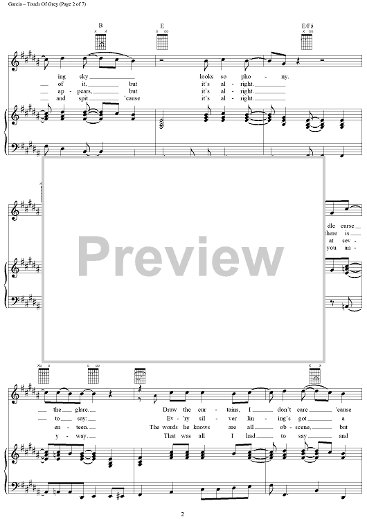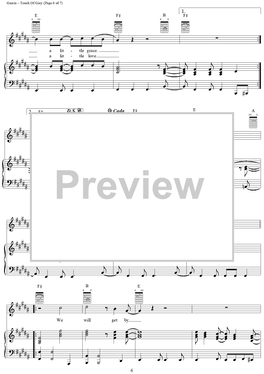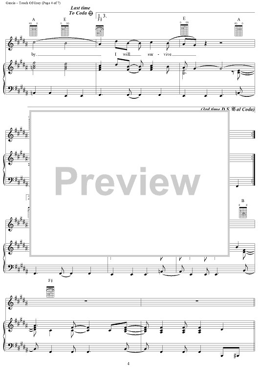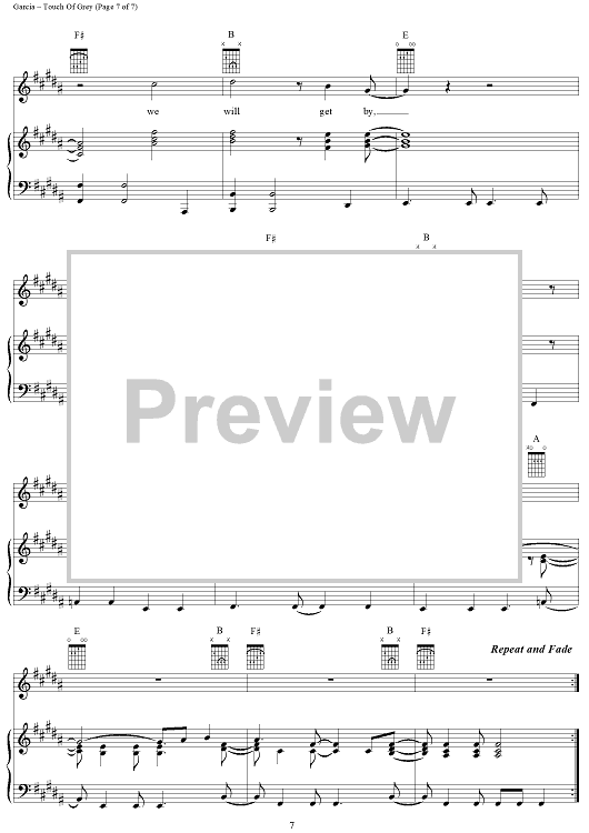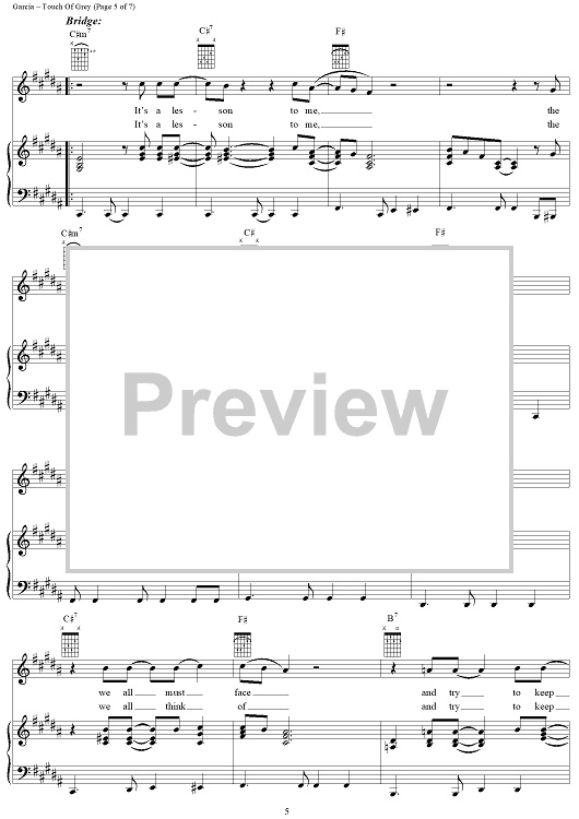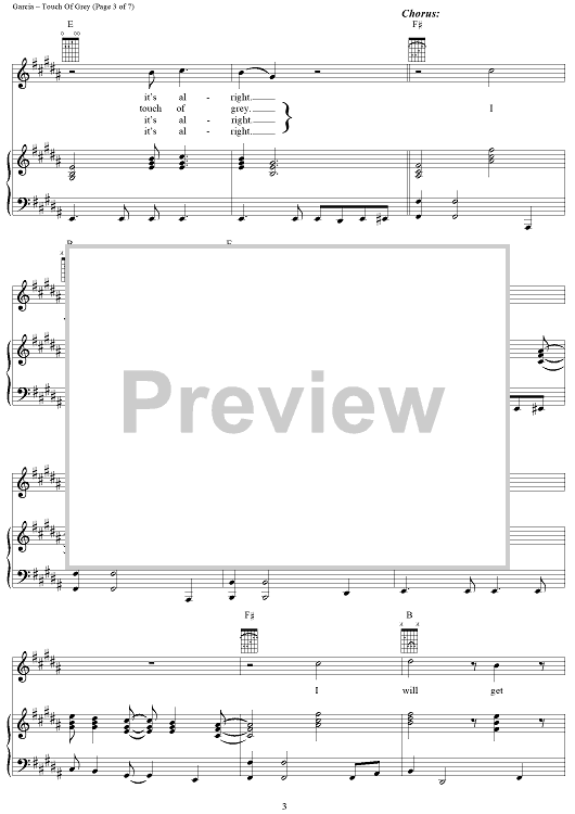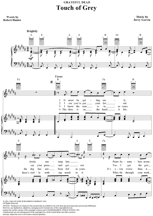 Digital Sheet Music for Touch of Grey by Jerry Garcia, Robert Hunter, Grateful Dead scored for Piano/Vocal/Chords; id:111121