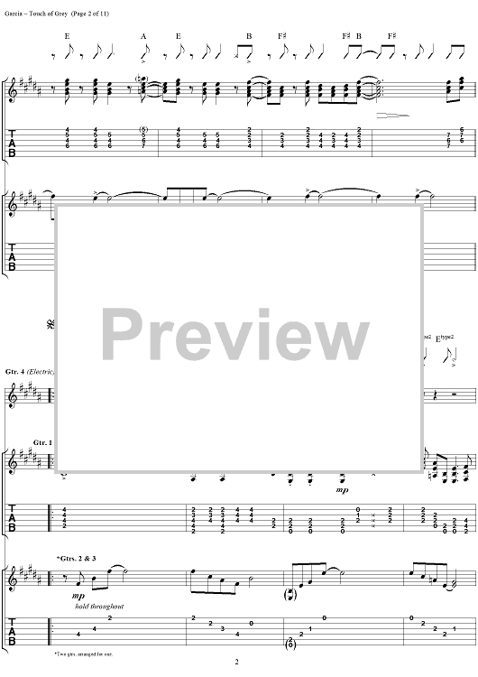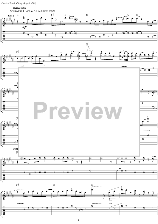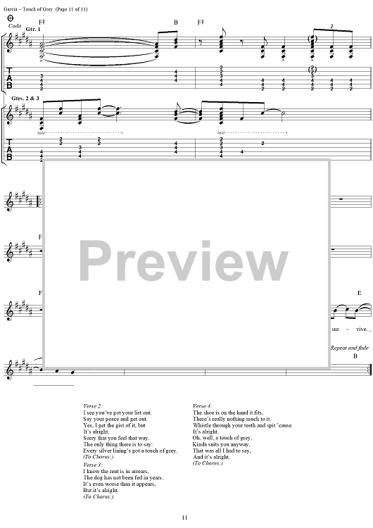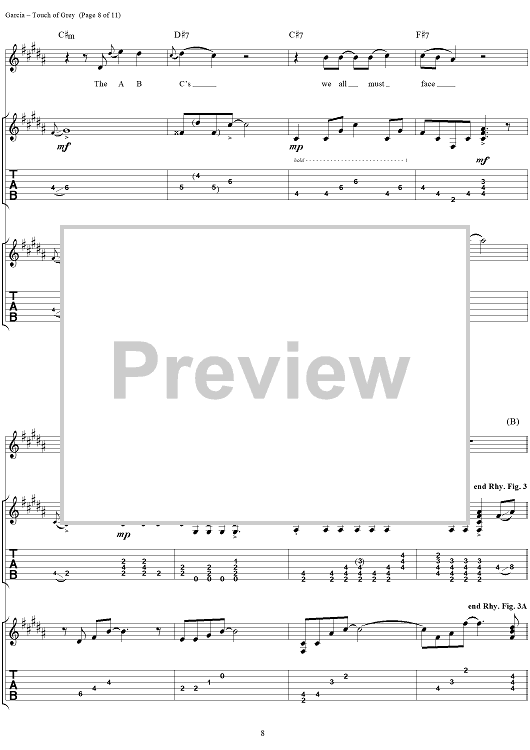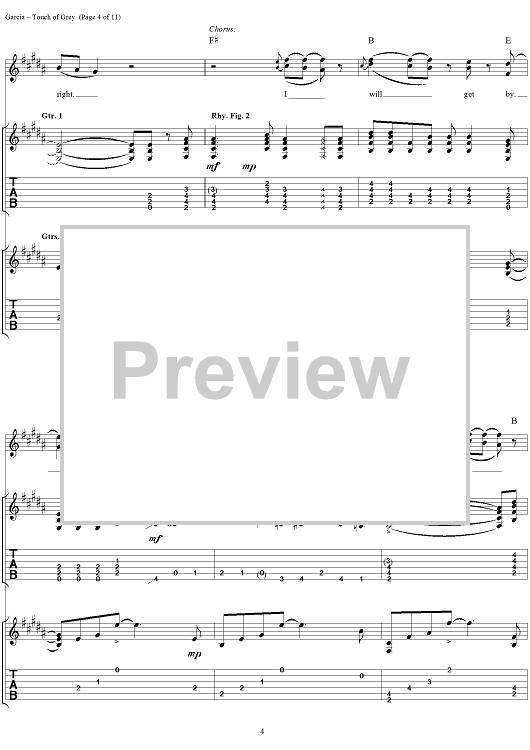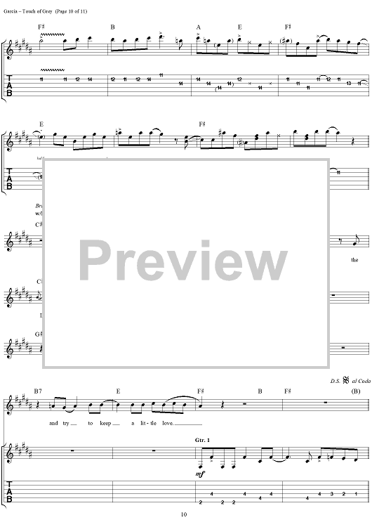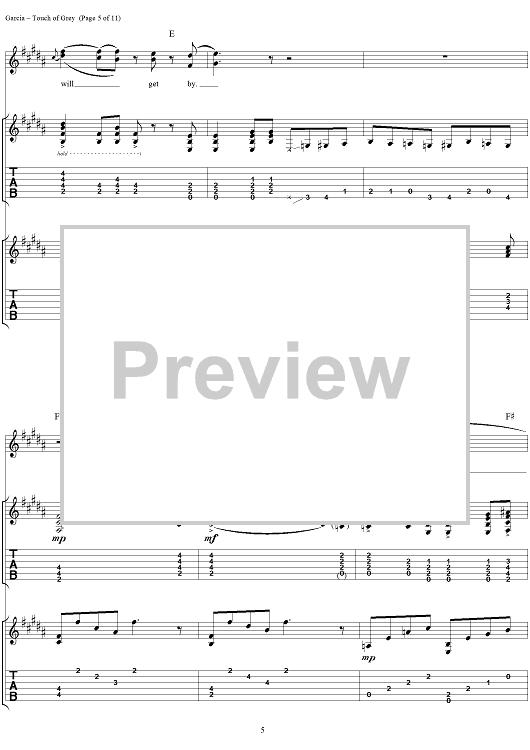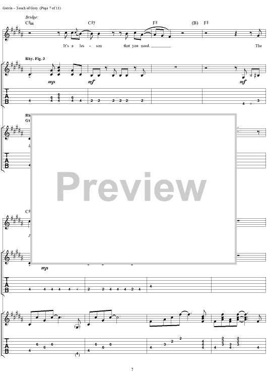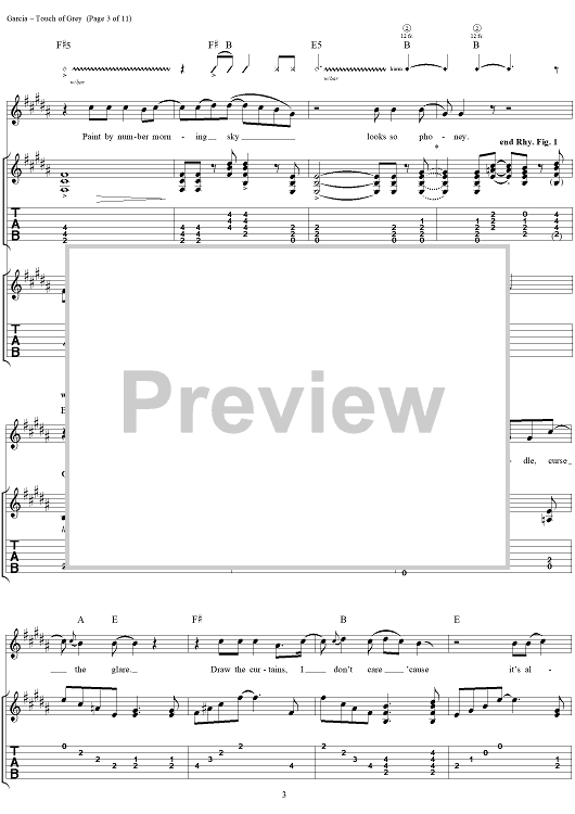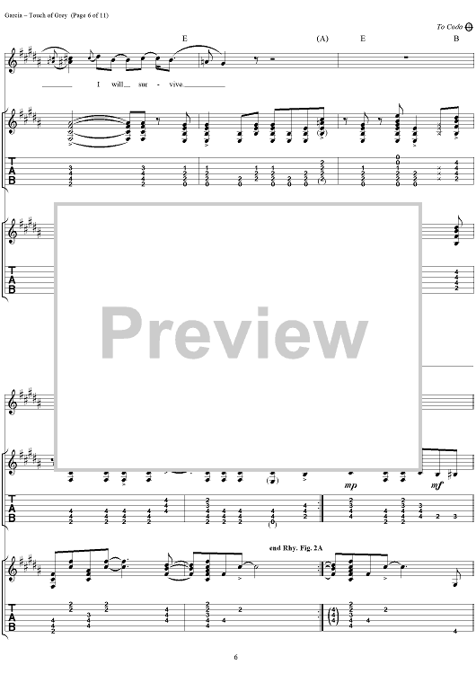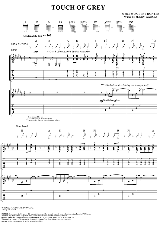 Digital Sheet Music for Touch of Grey by Jerry Garcia, Robert Hunter, Grateful Dead scored for Guitar Tab/Vocal; id:113484