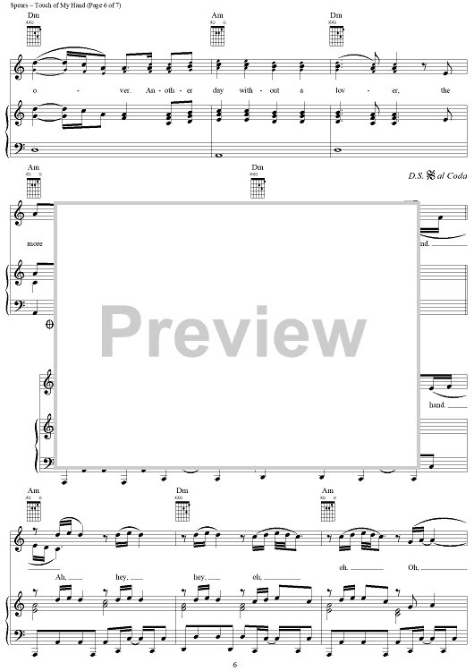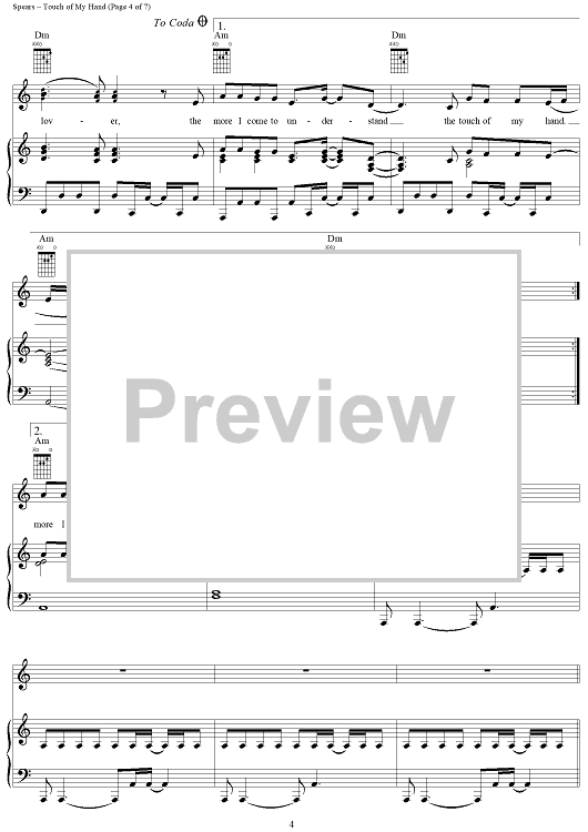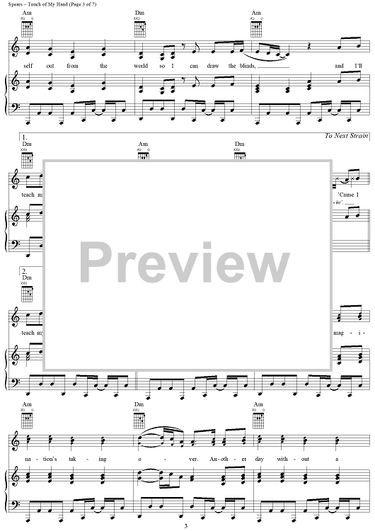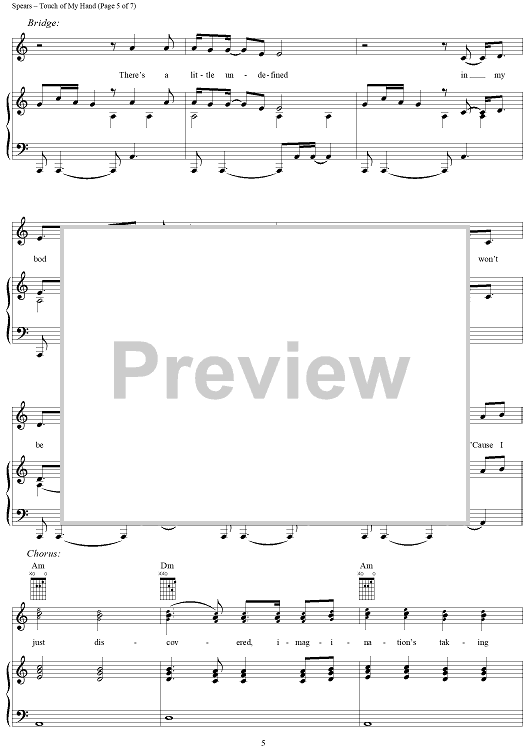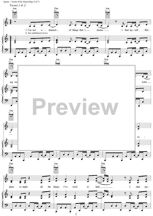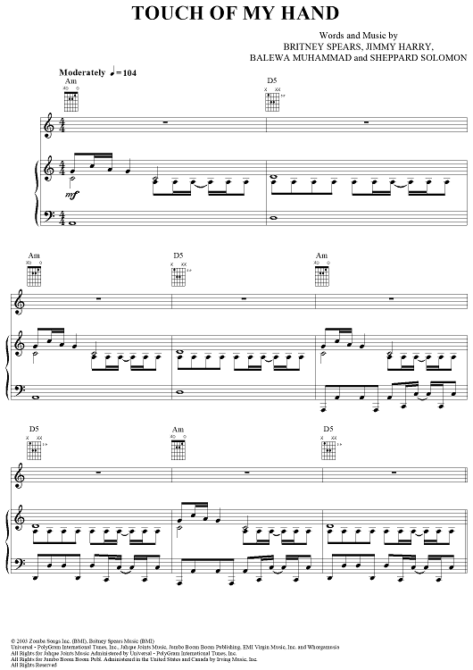 "Touch of My Hand" Sheet Music by Britney Spears