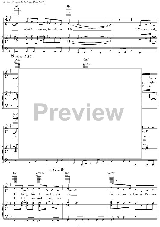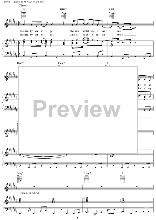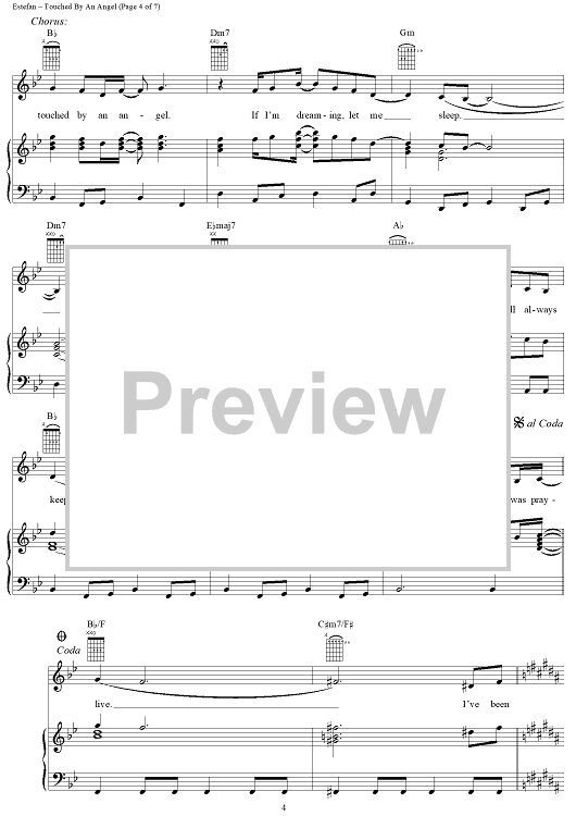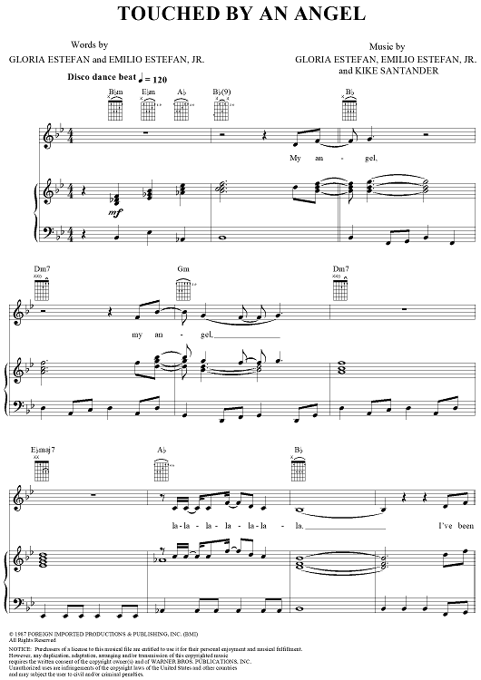 Digital Sheet Music for Touched By An Angel by Gloria Estefan, Kike Santander, Emilio Estefan Jr. scored for Piano/Vocal/Chords; id:119775