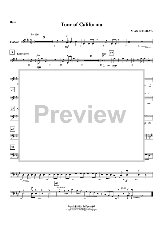 Digital Sheet Music for Tour of California - Bass by Alan Lee Silva scored for Orchestra; id:406820
