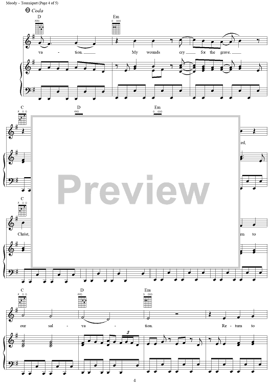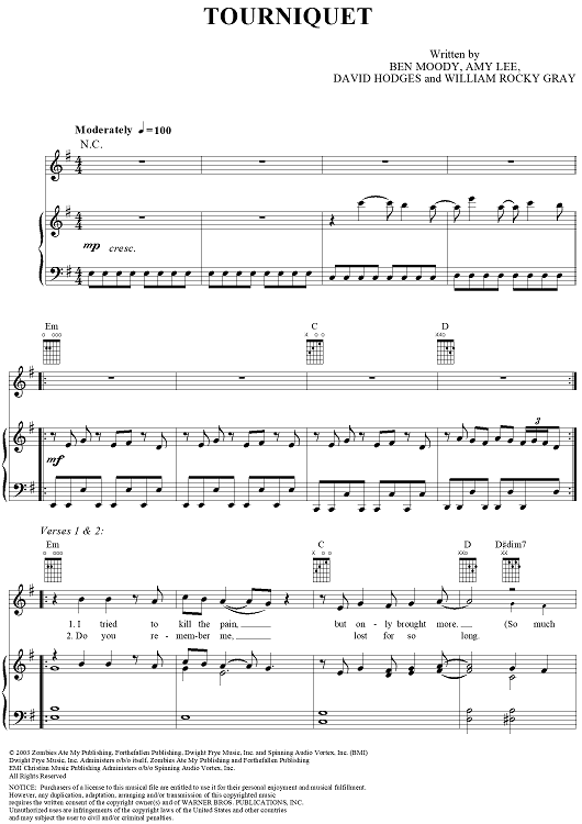 Digital Sheet Music for Tourniquet by Evanescence, Ben Moody, Amy Lee, David Hodges, William Rocky Gray scored for Piano/Vocal/Chords; id:304556