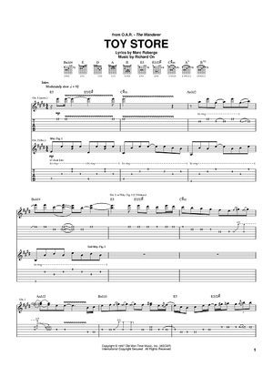 Digital Sheet Music for Toy Store by O.A.R., Richard On, Marc Roberge scored for Guitar Tab; id:390264
