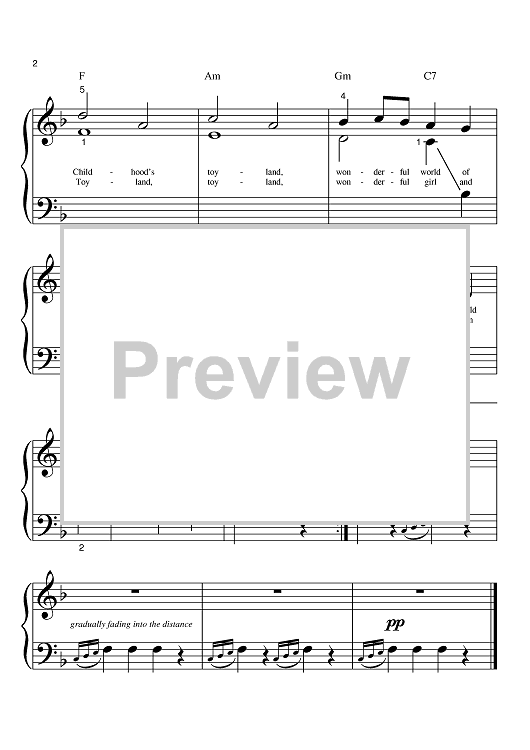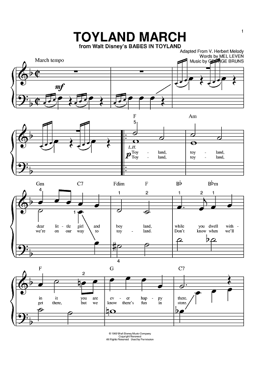 Digital Sheet Music for Toyland March by George Bruns, Mel Leven scored for Big Note Piano; id:394591