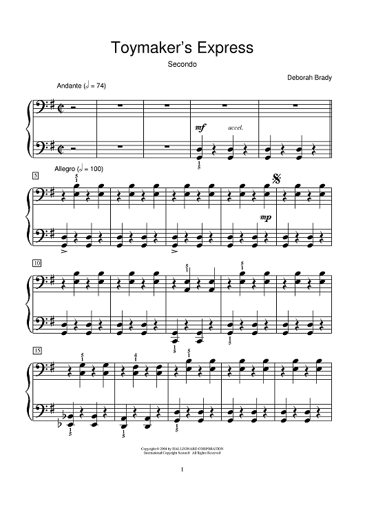 Digital Sheet Music for Toymaker's Express by Deborah Brady scored for 1 Piano, 4 Hands; id:374533