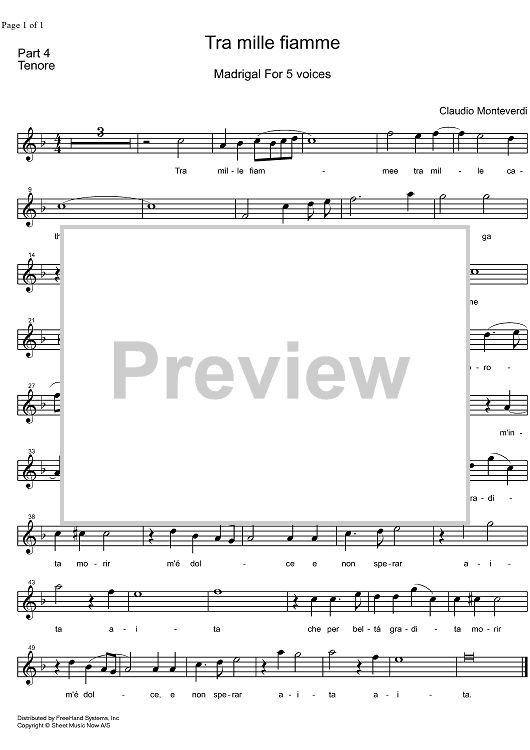"Tra mille fiamme" Sheet Music by Claudio Monteverdi