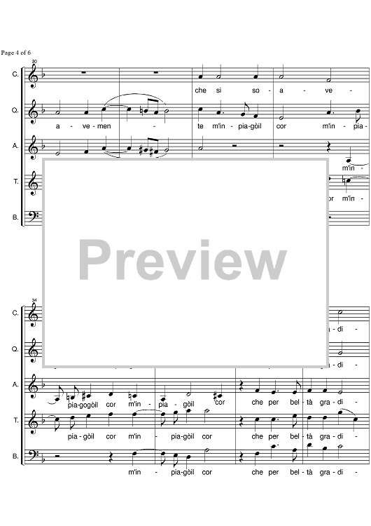 Digital Sheet Music for Tra mille fiamme - Score by Claudio Monteverdi scored for SATB Choir; id:327967