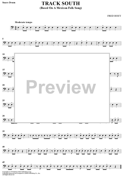 Digital Sheet Music for Track South (Based on a Mexican Folk Song) by Fred Hoey scored for Snare Drum/Piano; id:439489