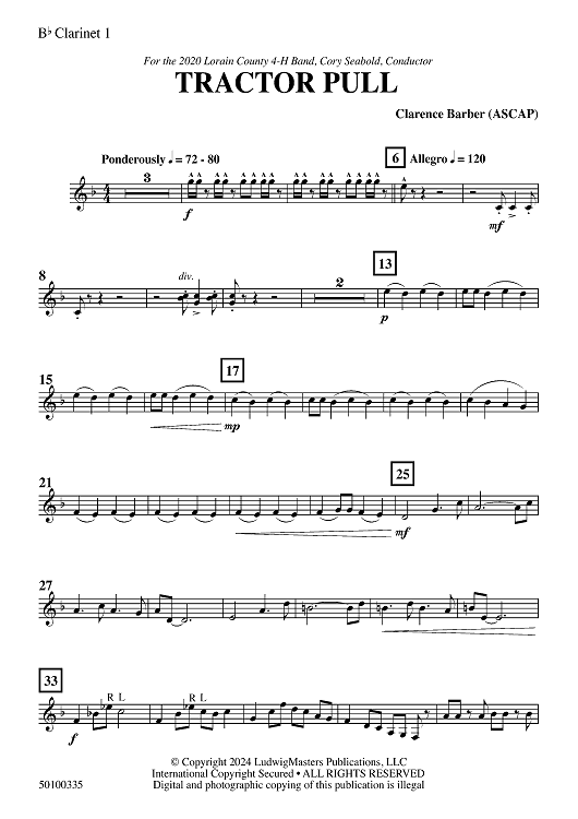 "Tractor Pull - Bb Clarinet 1" Sheet Music by Clarence Barber