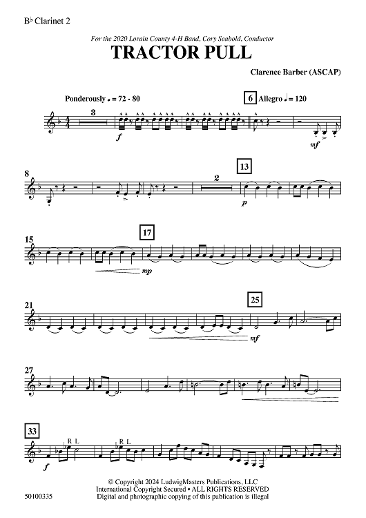 "Tractor Pull - Bb Clarinet 2" Sheet Music by Clarence Barber