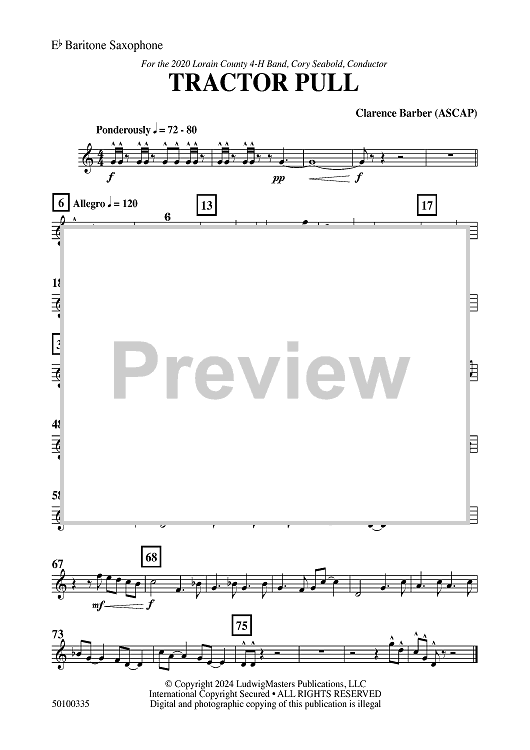 "Tractor Pull - Eb Baritone Sax" Sheet Music by Clarence Barber