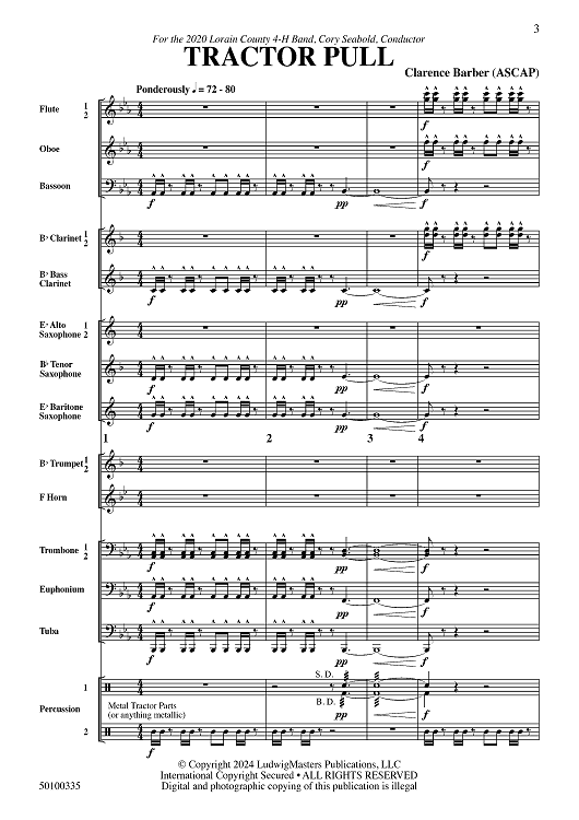"Tractor Pull - Full Score" Sheet Music by Clarence Barber