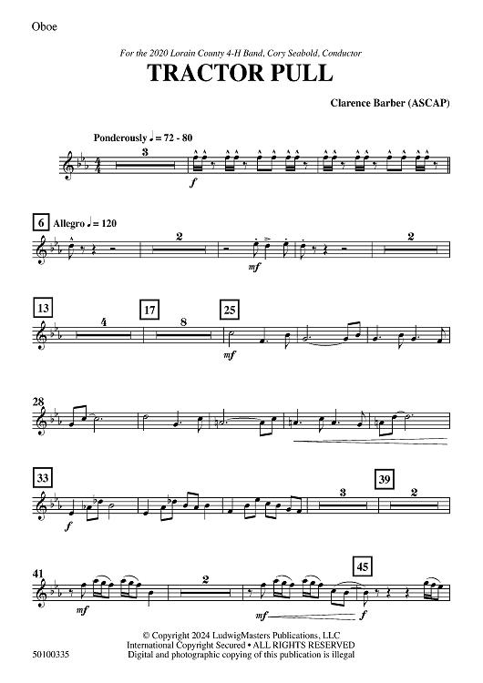 "Tractor Pull - Oboe" Sheet Music by Clarence Barber