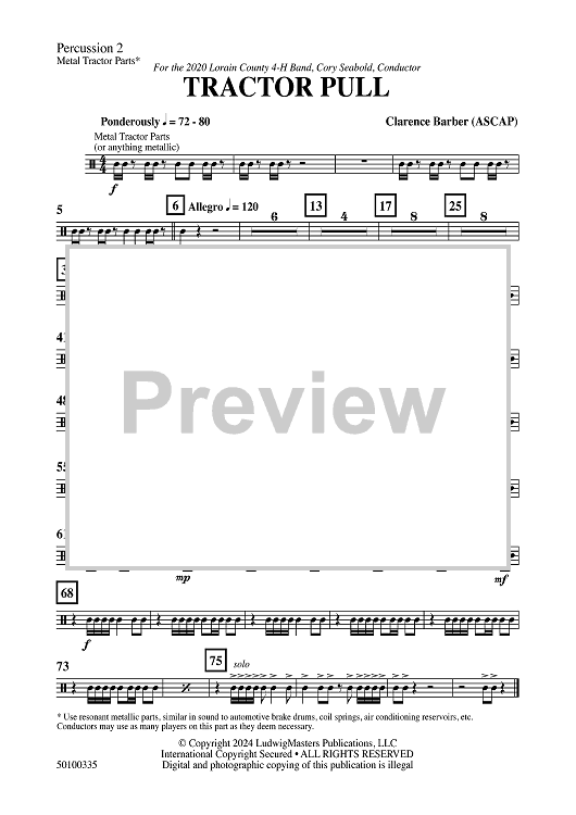 "Tractor Pull - Percussion 2" Sheet Music by Clarence Barber