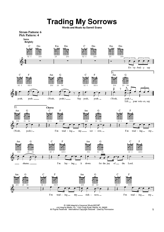 "Trading My Sorrows" Sheet Music by Darrell Wayne Evans