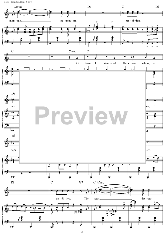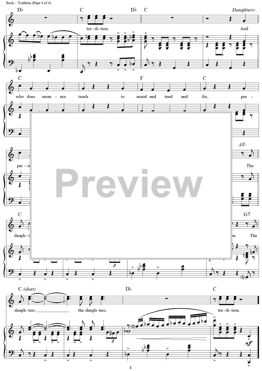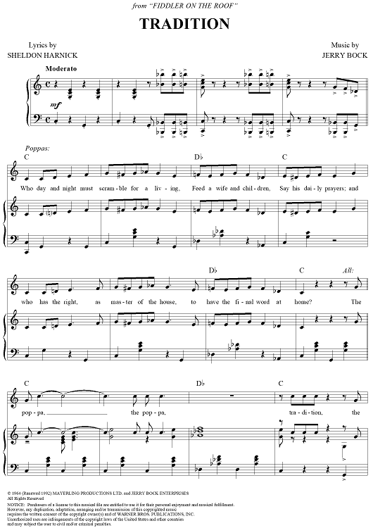 Digital Sheet Music for Tradition by Jerry Bock, Sheldon Harnick scored for Piano/Vocal/Chords; id:307909