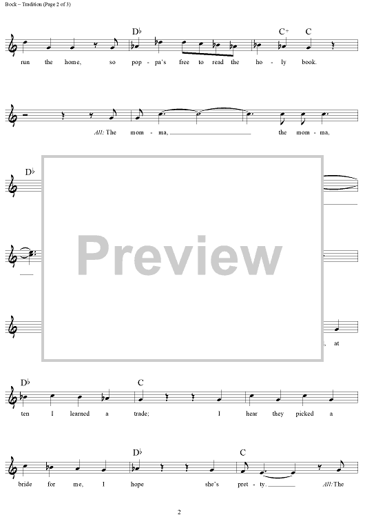 Digital Sheet Music for Tradition by Jerry Bock, Sheldon Harnick scored for Lead Sheet; id:442538
