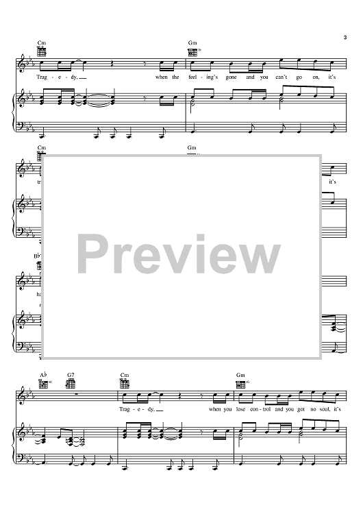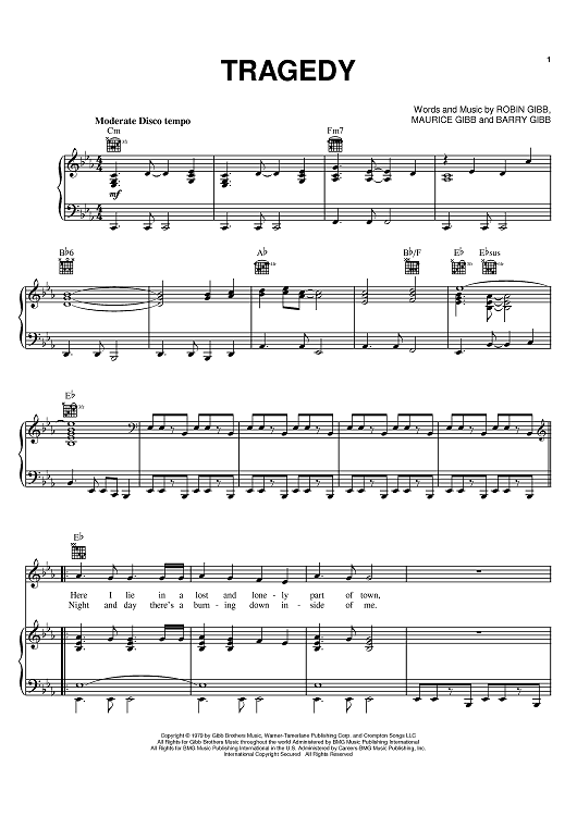 Digital Sheet Music for Tragedy by Bee Gees, Maurice Gibb, Barry Gibb, Robin Gibb scored for Piano/Vocal/Chords; id:369370