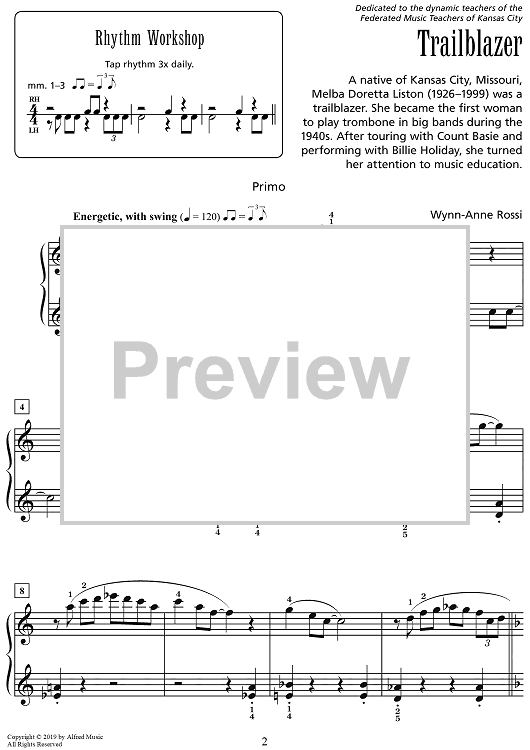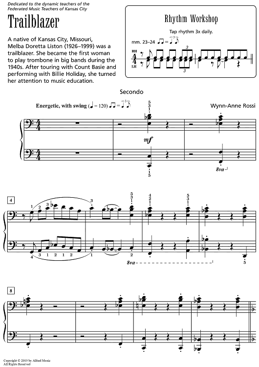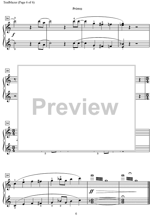 Digital Sheet Music for Trailblazer by Wynn-Anne Rossi scored for 1 Piano, 4 Hands; id:469652