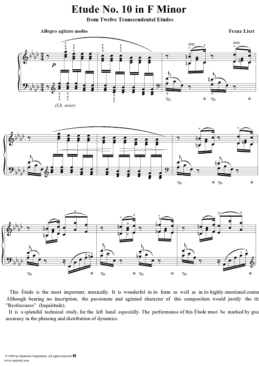 "Transcendental Etude No. 10: Allegro agitato molto in F Minor" Sheet Music by Franz Liszt
