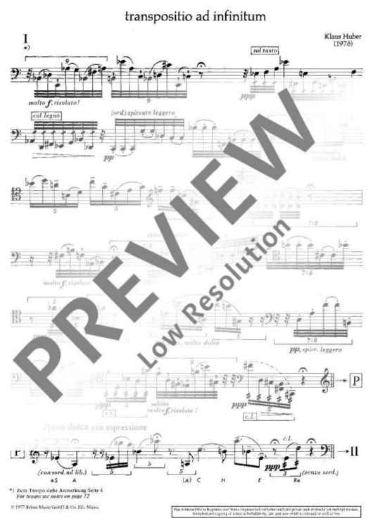 Digital Sheet Music for Transpositio ad infinitum by Klaus Huber scored for Cello; id:473705