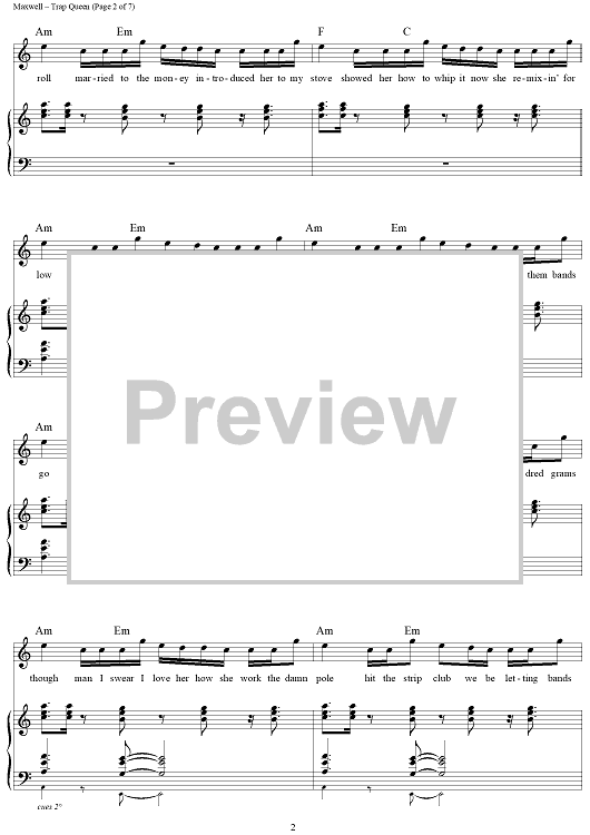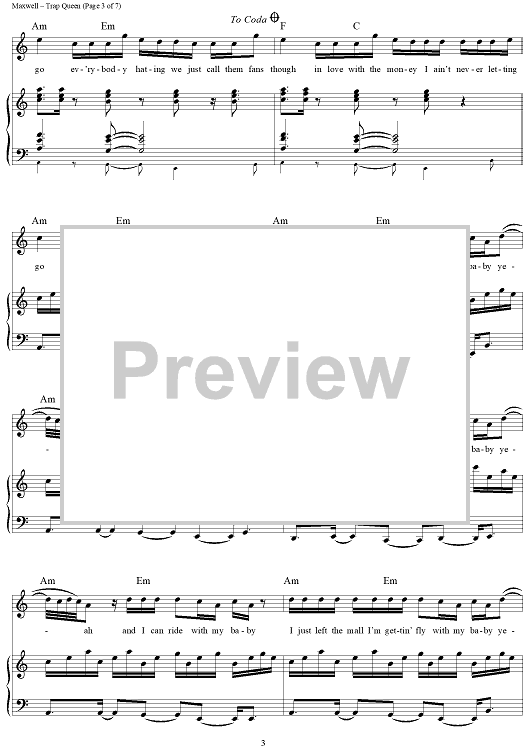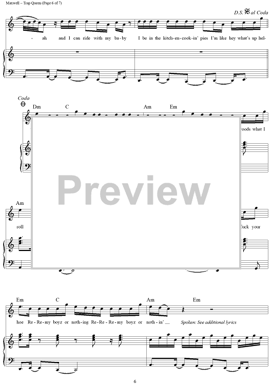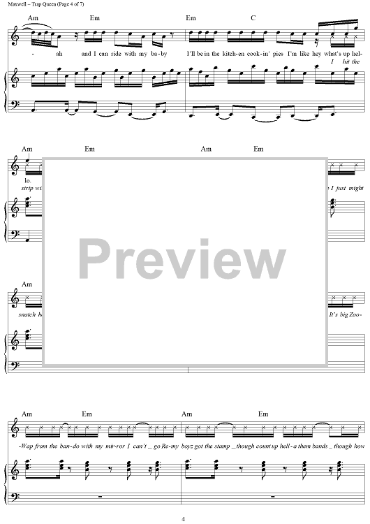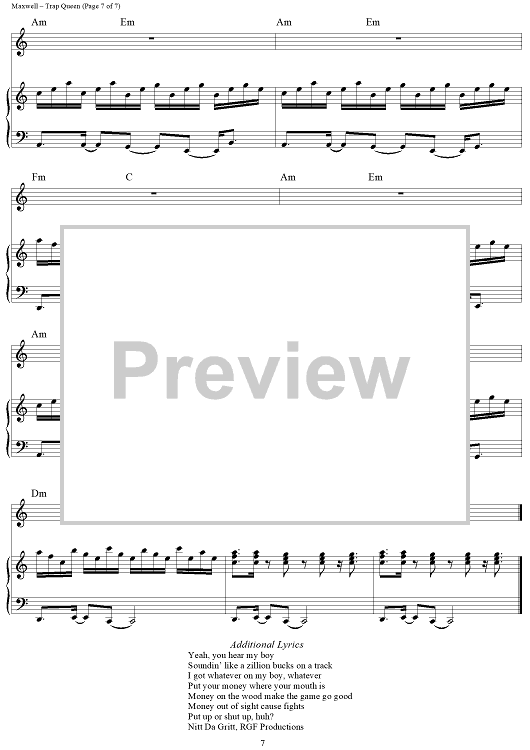 Digital Sheet Music for Trap Queen by William Maxwell, Anton Matsulevich, Fetty Wap scored for Piano/Vocal/Chords; id:451793