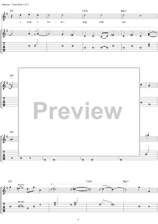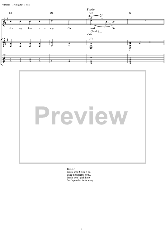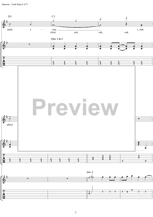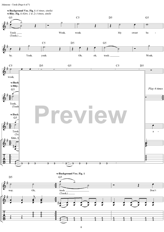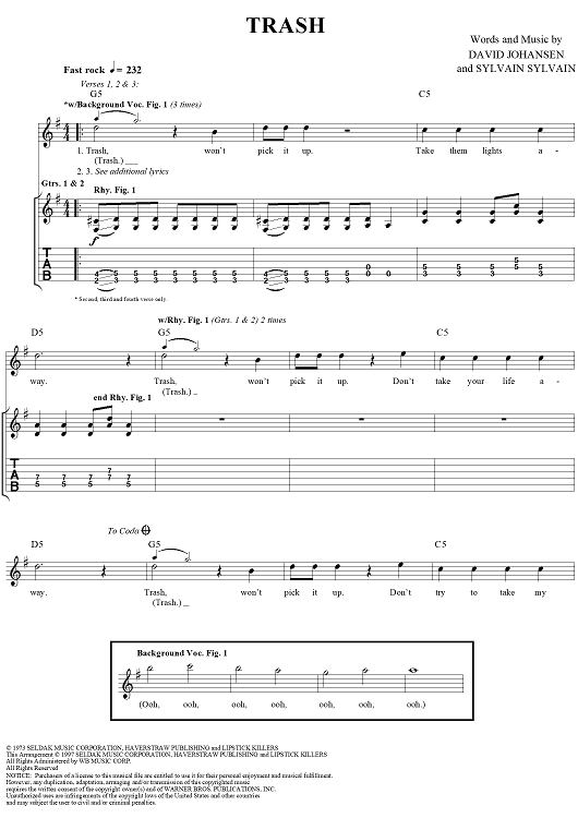 Digital Sheet Music for Trash by David Johansen, The New York Dolls, Sylvain Sylvain scored for Easy Guitar Tab/Vocal; id:233609